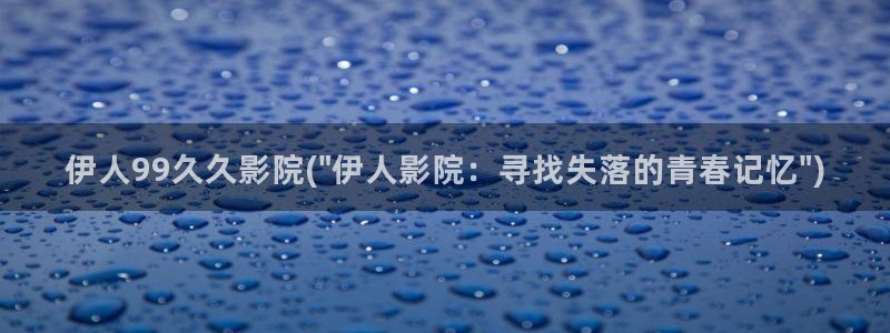 午夜视屏伊人阁:伊人99久久影院(\"伊人影院:寻找失落的青春记忆\")